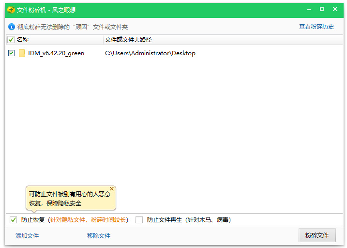 2、将文件拖拽或者通过“添加文件”按钮加入待粉碎列表