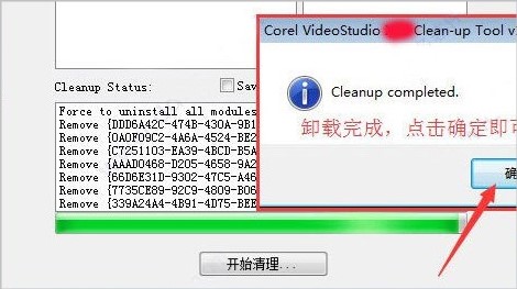 6、最后有一个“Cleanup completed”的提示,点击“确定”即可完成卸载。