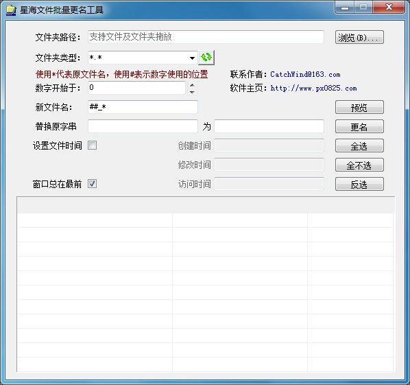星海文件批量更名工具是一款操作简便且功能强大文件工具。界面简洁直观,一目了然,操作方便。支持文件和文件夹拖放操作。可以按序列进行命名,更改相册或下载的连续剧时特别有用。支持更改文件扩展名。应网友要求,新增文件时间修改功能。文件类型过滤,可以自行选择或忽略指定的文件。操作结果显示。更名成功与否,让您尽在掌握。