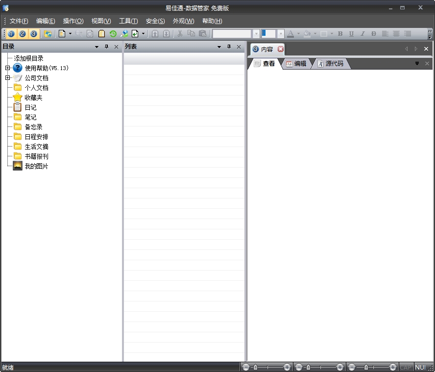 易佳通数据管家功能强大,支持文档格式转换功能,具有文档编辑器,提供丰富的编辑功能,支持将用户数据分类明细的保存,并提供了丰富的搜索查询功能,同时,软件还提供有大量界面布局、主题和精美模板可供下载使用,支持多用户功能,提供便捷的远程访问模式,应用范围广,可以作为企业文档管理系统、个人文档管理系统、远程数据服务器等多种方式应用,有需求的朋友请下载体验。