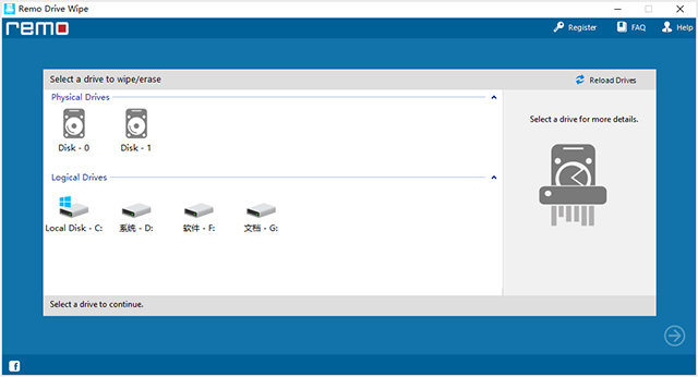 3、Remo Drive Wipe设计具有直观的设计和简单的用户界面,可帮助用户安全轻松地从硬盘驱动器清除私人数据。