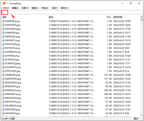 2、输入部分文件名,匹配部分文件名的文件和文件夹就会显示结果列表中。