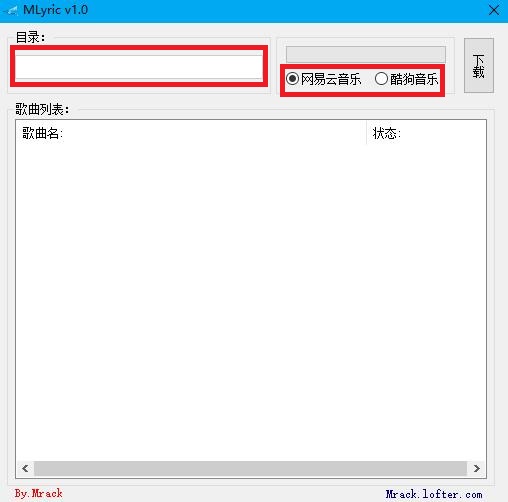 1、双击打开MLyric软件,点击目录下方空白文本框,打开存放音乐的文件夹