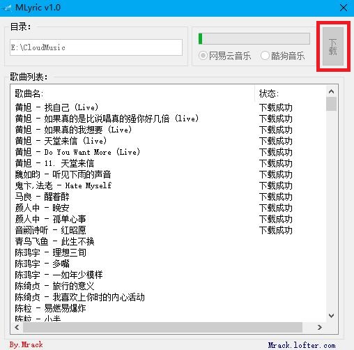 4、点击主页面的下载,可下载全部歌曲的歌词