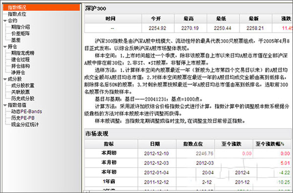 指数概况介绍沪深300指数的财务指标、市场表现、成分股以及本身的基本行情变化情况