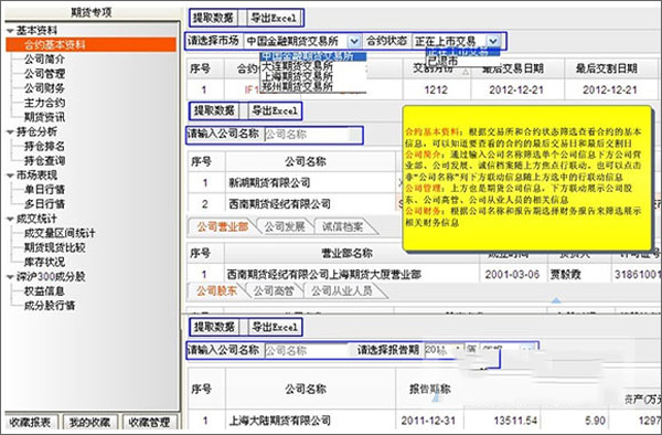 期货专题揭示期货相关的元素信息主要是期货公司信息、主力合约信息、合约行情信息、合约交易信息、以及合约相关的成分股行情信息