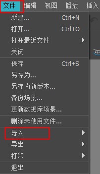 1、首先第一步我们打开软件之后点击界面左上角的文件选项卡,点击文件选项卡之后在出现的选项列表中找到导入这个选项。