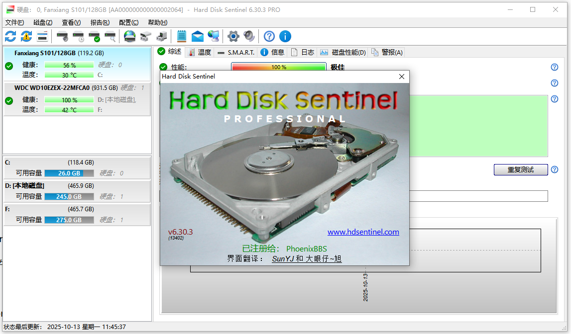 16、至此,硬盘健康监测与分析工具Hard Disk Sentinel Pro激活完成!