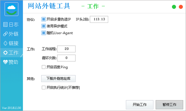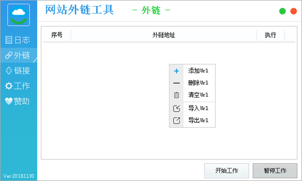 功能方面,它能动态更新群发网址库,还能智能采集目标网站,甚至能设置行业关键词,让采集的网站更精准,这点我觉得挺贴心的,毕竟乱发一通效果肯定不好。使用方法也简单,先设置工作模式,然后右键添加外链和网址,点开始就行,没什么复杂步骤,新手也能很快上手。