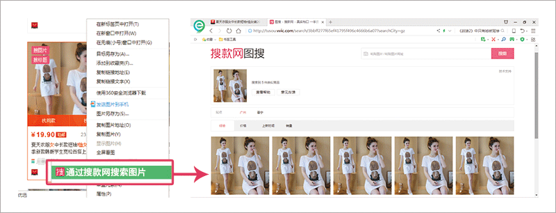 3、您在任何网站看到了心仪的款式或商品,都可以通过找款助手一键搜款,快速找到心仪款式或商品在广州沙河、普宁等批发市场的所有货源