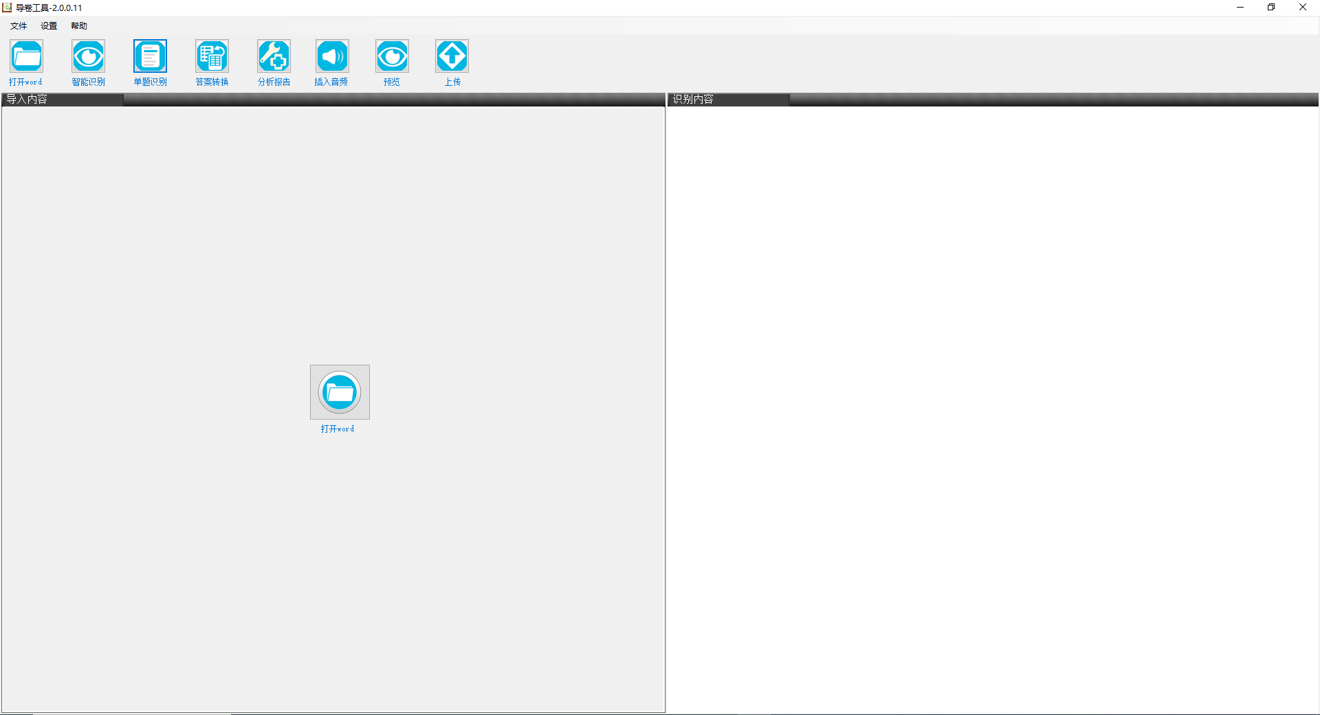 在程序中将Word试题文档打开,程序自动识别并切割题目、答案(包含简要答案与详细解析的识别),支持左右双侧直观浏览。