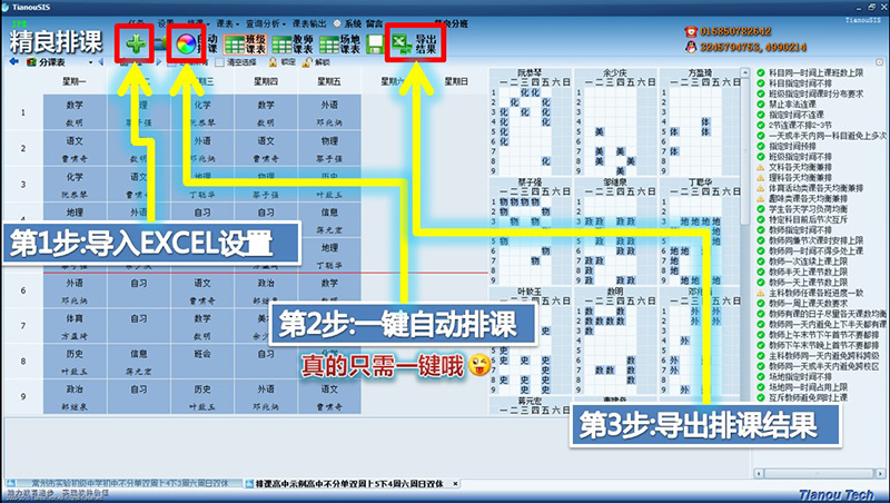 精良排课绿色免安装,无需设置,无需学习,拿起就用,一看就会,仅需三步,就能完成排课任务:
