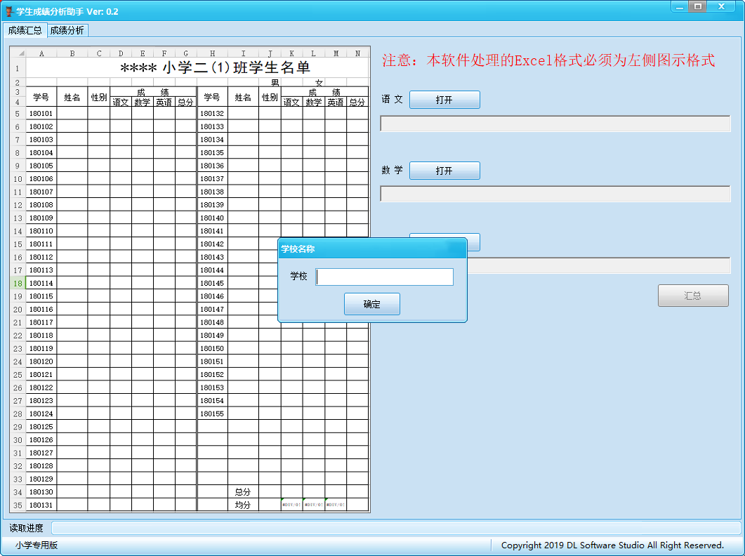 学生成绩分析助手是专为教师们打造的一款针对学生考试成绩进行排名、分析处理的一款学生成绩分析软件。用该软件只需要用户导入excel格式数据即可快速得到班级学生们的详细成绩,并会自动为用户计算语数英的总分和平均分,轻松为教师节约了大把时间,有效的提高了教师的工作效率。