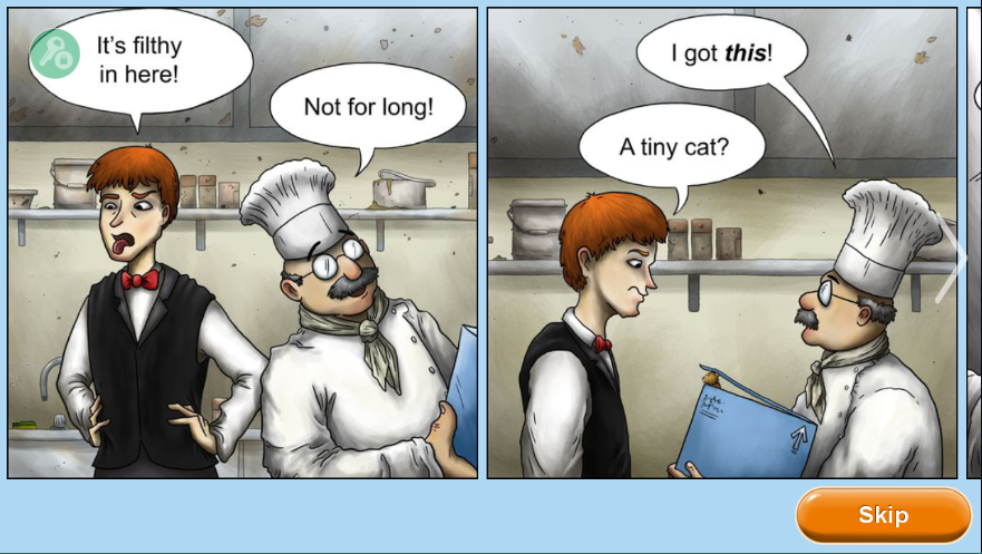 4、你将会体验到一番有趣的故事剧情,也可以选择【skip】跳过;