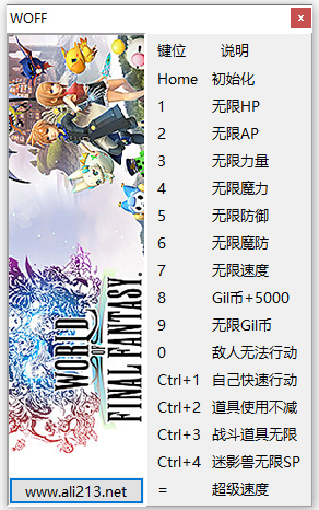 最终幻想世界是一款非常经典的角色扮演游戏,玩家能够与莲恩和朗恩姐弟俩一起在格利摩尔大陆探险,重新发现他们的过去并拯救未来。游戏可玩度高,但是上手难度较大,为此小编今天为大家带来了最终幻想世界修改器风灵月影版,支持简体,繁体和英文三种语言,拥有包括无限生命、无限AP、瞬间行动、战斗道具不减、无限战斗道具、超级速度、无限金钱、一击必杀等13项修改功能,能够帮助广大玩家更好的赢得游戏的胜利,不过小编建议玩家适当的修改可以让游戏更有乐趣,快免费下载体验吧。