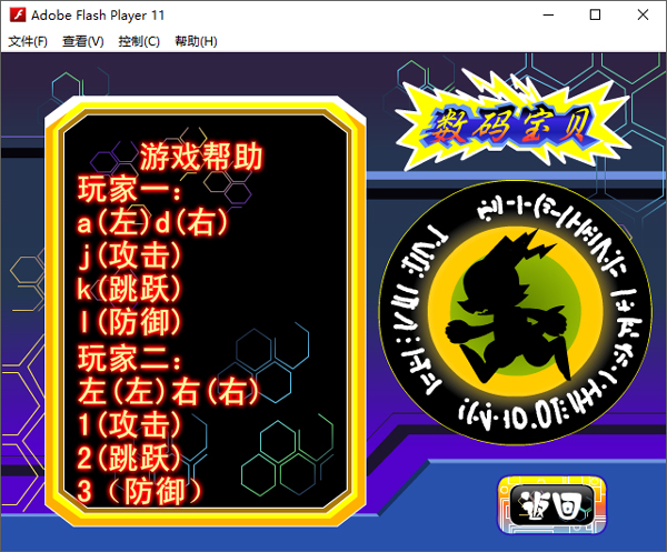 玩家二:方向键←→控制移动,小键盘1键攻击,2键跳跃,3键防御。