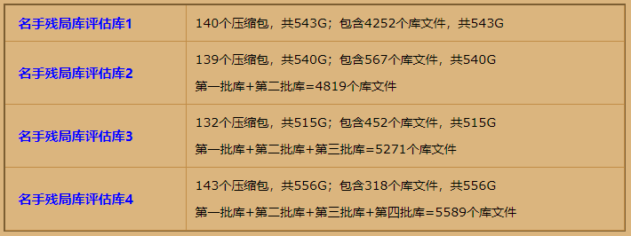 支持4个名手残局库评估库,软件包中已经有下载地址。