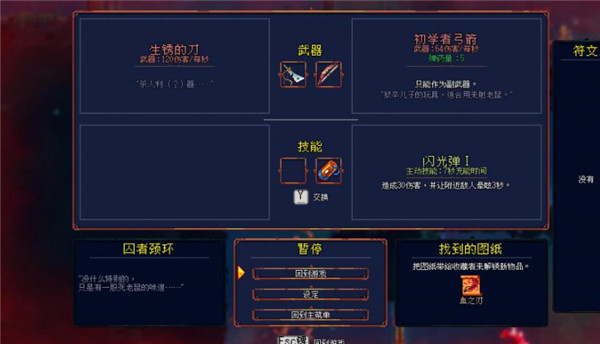 此外在怪物身上有几率爆出金色武器,精英高概率,BOSS必出,金武器具有无色特性,固定为L后缀,提供一点属性升级,不能进阶为S。诅咒宝箱则会掉落一个灰色武器,它为无色,但是会永久带有一个无法洗去的玩家受伤增加20%的特效附加。