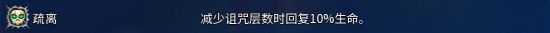 疏离——A,每减少一个诅咒就恢复10%的生命,高难度下非常好用,毕竟免费回血