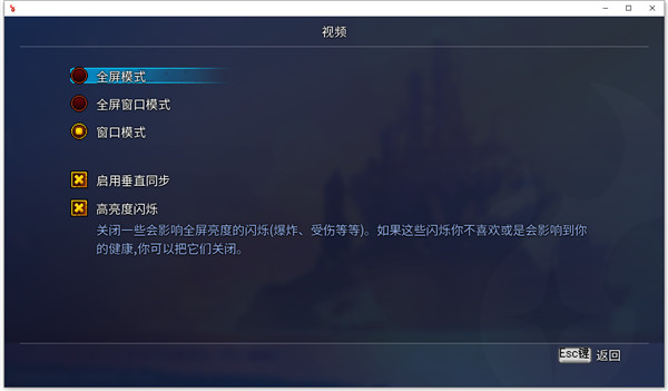 5、点击视频,用户可自定义全屏模式,窗口模式、启用垂直同步等等参数