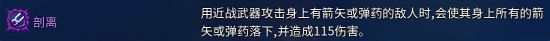 剖离——D,得同时满足两个条件才能触发,达成比较难,也不实用,主战术下为什么还要用近战武器呢?并且继承战术属性的近战武器只有狂暴之刃和诅咒之刃