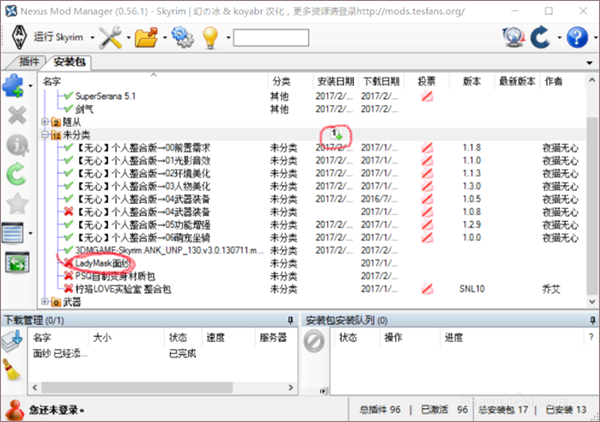 3、在软件下方就会有下载管理显示你的mod的添加;