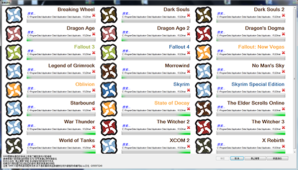 1、软件安装完成后会直接搜索游戏,这时为了方便,只要搜索到上古卷轴5,就可以关掉其他的搜索,如下图,将skyrim点√,其他直接点×,然后点确定;