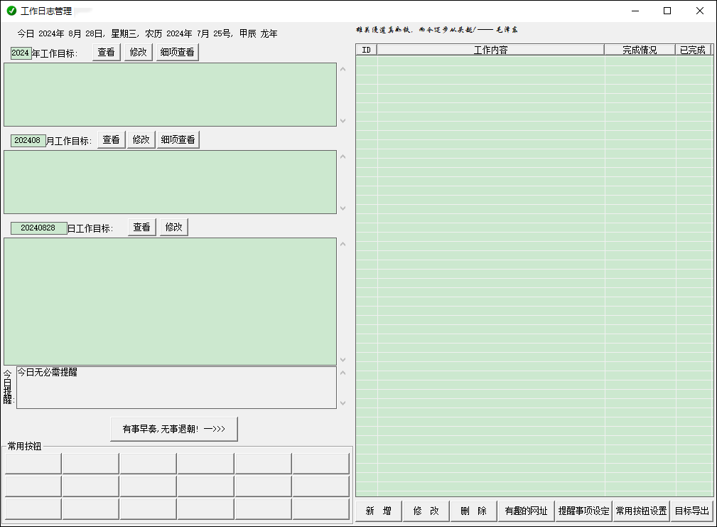 工作日志管理软件是一款非常实用的日志管理工具,该软件为用户提供了简单的工作日常管理功能,支持每日每月每年的工作目标设定、重要日提醒等功能,极大的方便用户安排自己的工作时间,用户还可以自己设置一些时间提醒,从而不忘记一些重要工作内容。