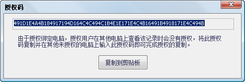 在这里面输入刚才在A电脑的授权码界面复制出来的那一长串授权码并确定后,该记录就会自动刷新并得到授权,并且记录编号也变为授权过的f21ed7f86b9ccfc4a181cd9f4f781cfd。