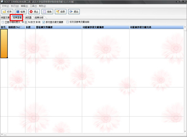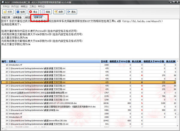 10、本软件检测结果只能作为一个参考,可以使用表格右键导出详细检查结果发送给被检查本人,本软件不对是否剽窃做结论,只是告诉你与现存文献相似度高于80%的文字比例所占文章总数比例是多少。