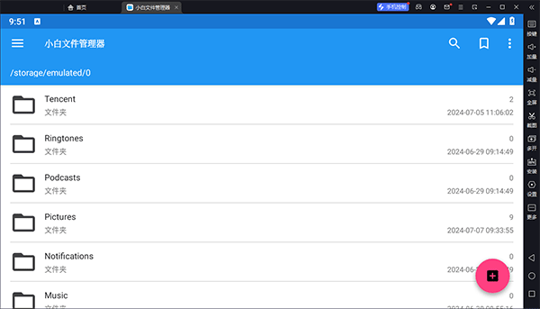 小白文件管理器电脑版是一款借助模拟器在电脑上运行的文件管理和传输工具,可以帮助用户更加高效的管理设备中的各种文件,可以浏览的文件类型十分广泛,无论是图片、音乐、视频、安装包、文档、压缩文件等都可以直接进行浏览,并且可以根据不同的文件类型进行快速检索,也可以通过关键词查找,让用户可以快速的找到自己想要的文件。除此之外,小白文件管理器还支持远程访问功能,用户可以通过远程访问来进行不同设备之间的文件传输,支持云存储服务同步,方便进行文件备份分享,对此有需求的朋友们可以来下载体验。