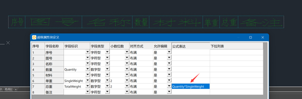 (2)标题栏、明细表、代号栏字段关联及计算