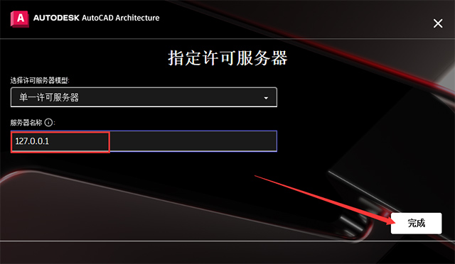 10、输入服务器名称:127.0.0.1 然后点击完成。