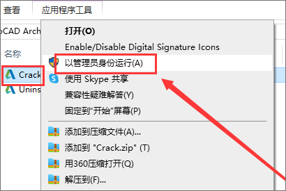 7、打开Crack文件夹进去,选择破解程序Crack,鼠标右键以管理员身份运行;