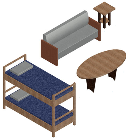 构造中包含表示建筑的几何体。它们是一些图形文件,其中包含建筑的一个独特构成部分。每个楼层至少要由一个构造表示。如果建筑大且复杂,每个楼层都要使用多个构造进行创建,例如,一个构造表示墙布置、一个构造表示隔断和家具,而另一个构造则表示构架元素。