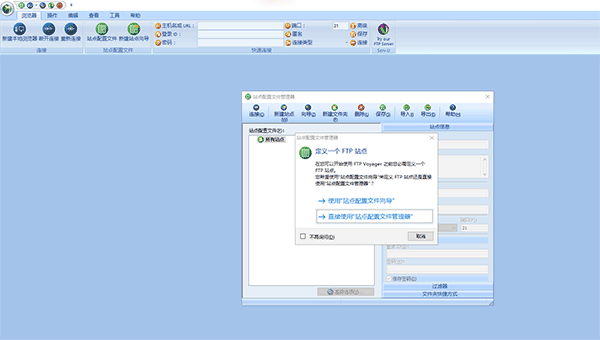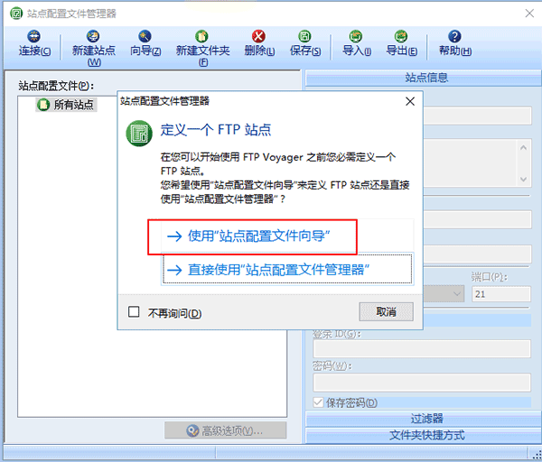 1、打开FTP voyager,提示站点配置文件管理器向导。