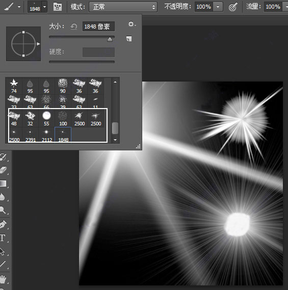 4、找到最后的画笔就是ps闪光灯效果笔刷,拥有多种不同的形状,用户可以调整大小直接放在图片上使用。