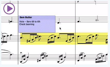 利用“批注”功能,可以直接在乐谱上绘制自由格式,以及向协作者、编曲家、音乐家或学生传达编辑、说明和反馈,从而简化协作和审核流程。所有批注会智能分组,并始终保持附加到您将它们所添加到的小节。另外,也可关闭批注功能,避免在打印时显示。