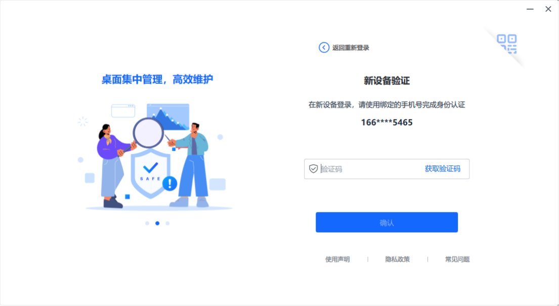 若您的登录账号已绑定手机号,则可以输入手机号和获取的短信验证码,即可登录。