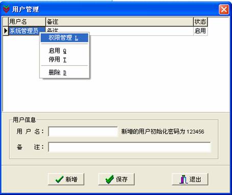 选择“文件”菜单里“用户管理”命令,单击“新增”按钮后,录入“用户名”和“备注”后,单击“保存”按钮。