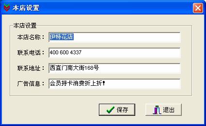 选择“文件”菜单里“本店设置”命令,录入您店里的基本信息后,单击“保存”按钮。