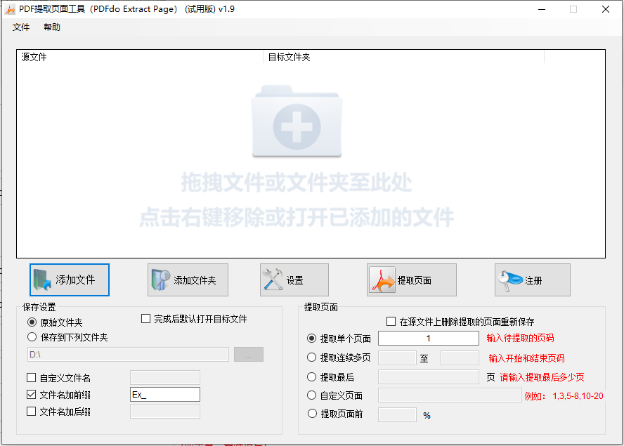 4、能够提取单独的页面, 或持续的好几个页面,或不持续的好几个页面。