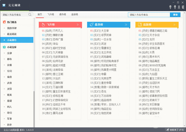 海量书库,小说阅读器内置百万小说,60000本原创优秀作品任你尽情随意挑选;强大的同人小说、玄幻、穿越、都市、言情、经管、校园,分类清晰。