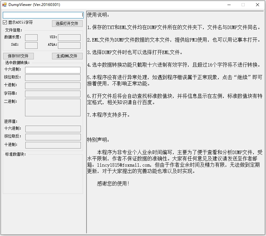 DumpViewer官方版是由互联网个人用户针对dump文件研发的一款dump转txt工具。它可以用于管理和编辑IC卡里的dump文件,将用户不常用的dump和eml文件实时预览,支持自动查找标准数值块,并显示文件信息,如数据长度、UID、SAK,且每个标准数值都有特定格式,相互之间绝不会受影响,感兴趣的朋友不妨下载尝试。