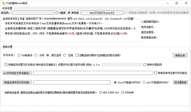 3、支持GBK编码、UTF-8编码的txt文件转换成excel文件。