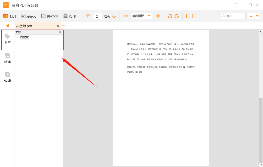 如果文档中带有书签或目录的,点击界面右侧的“书签”可打开文档的所有目录,方便浏览;如需关闭,再次点击“目录”即可;