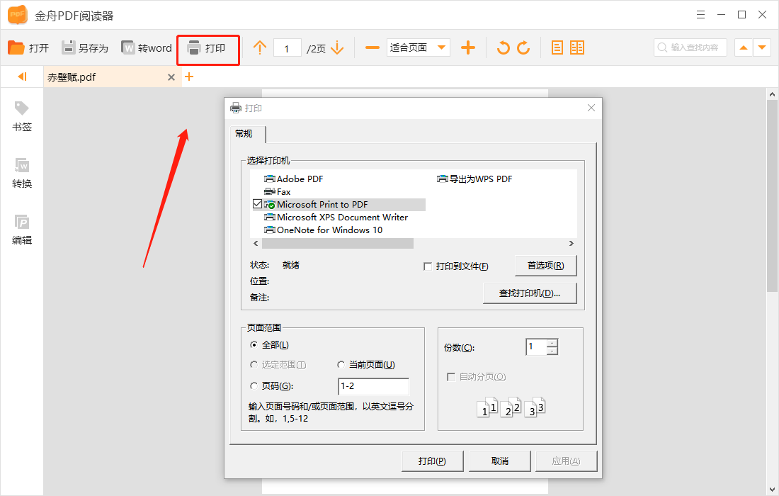 如果需要打印已打开的PDF文档,点击此按钮可立即实现打印;
