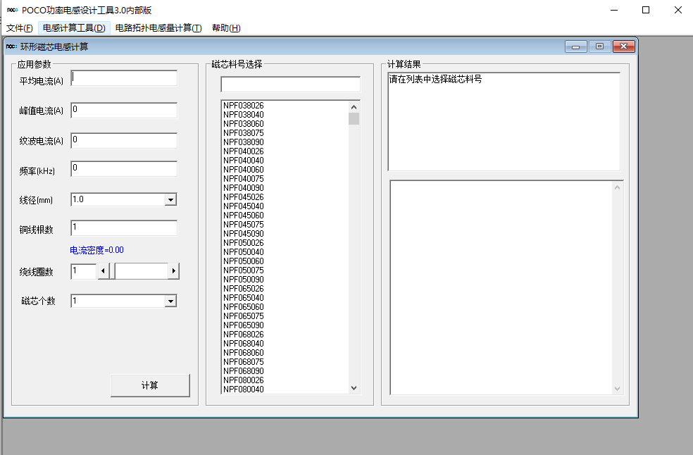 POCO功率电感设计工具是由铂科磁材开发的一款功能强大的磁芯选型计算软件,具有使用灵活,操作简单,功能齐全的特点。