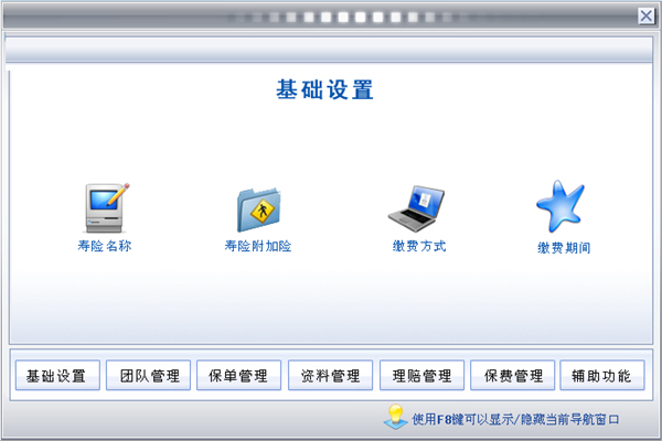1、基础设置包括寿险名称、寿险附加险、缴费方式、缴费期间等选项,如图: