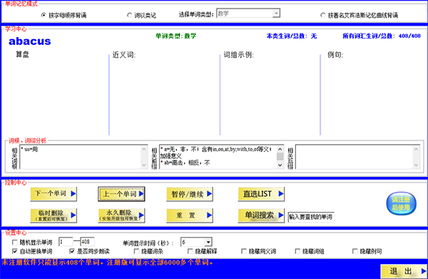 5、通过按钮"临时删除"删除的单词可以通过"重置"按钮进行恢复; 通过按钮"永久删除"删除的单词可以通过重新安装软件和升级进行恢复。